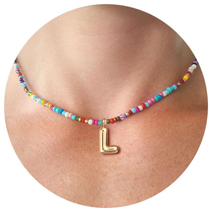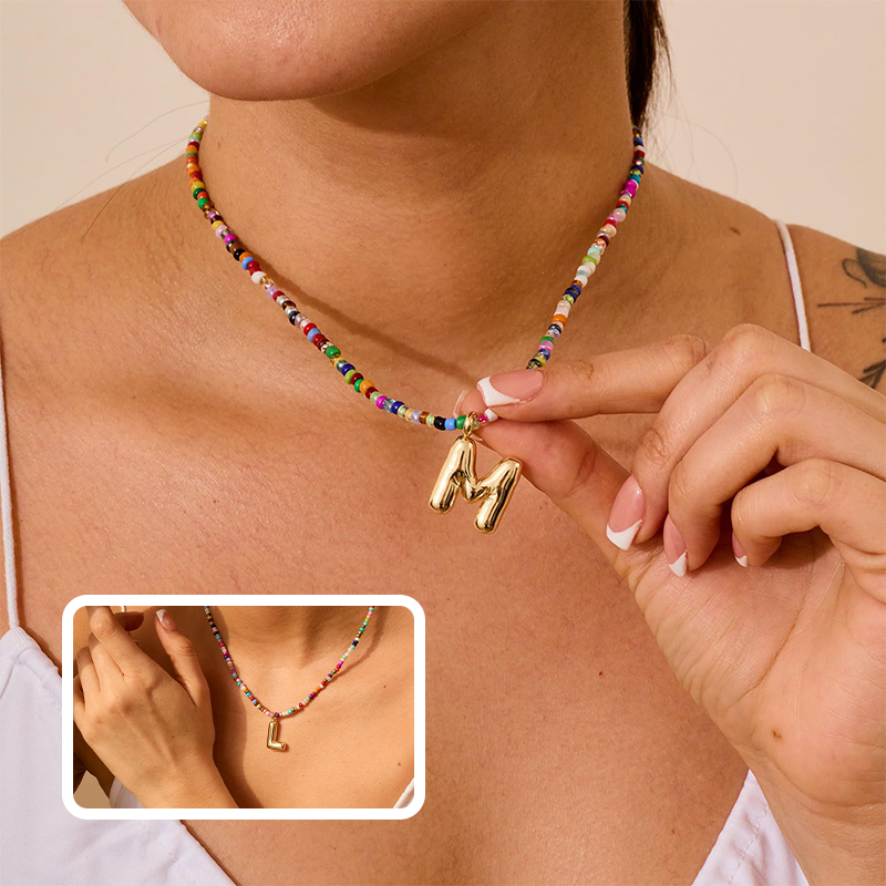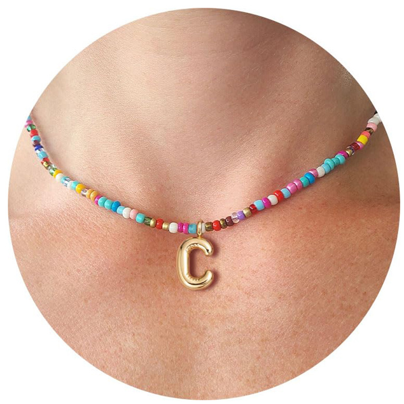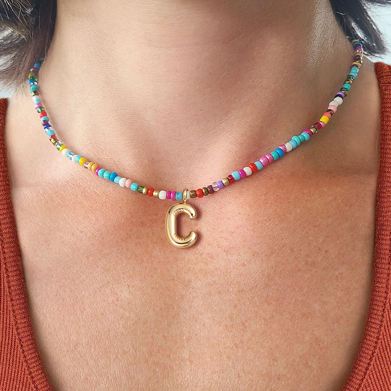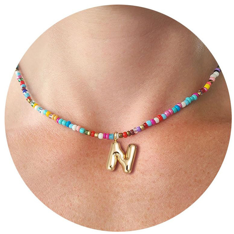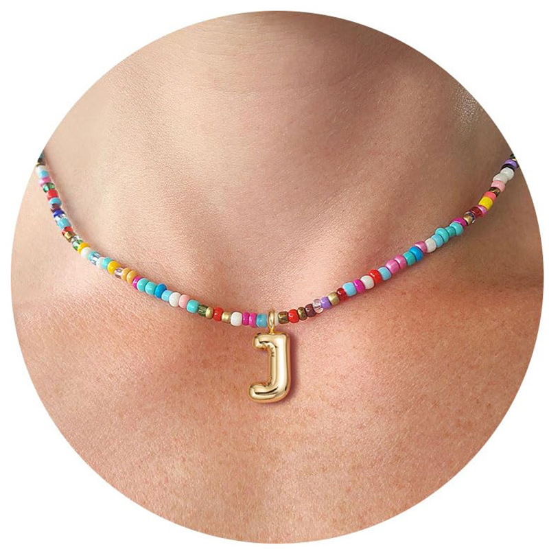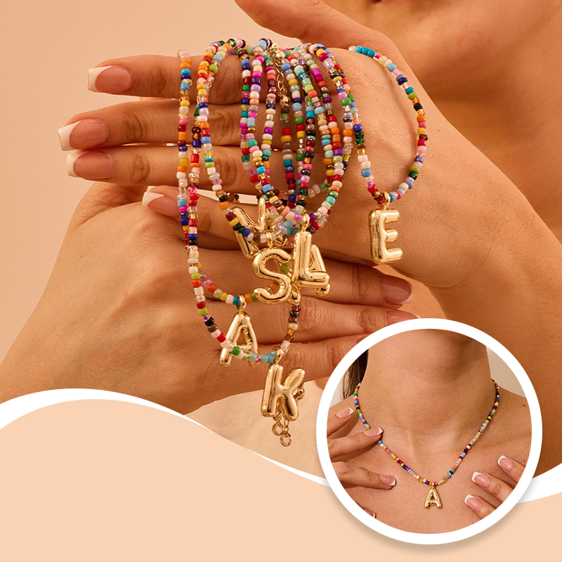 Trendig halsband med 26 bokstavshängen och färgglada pärlor