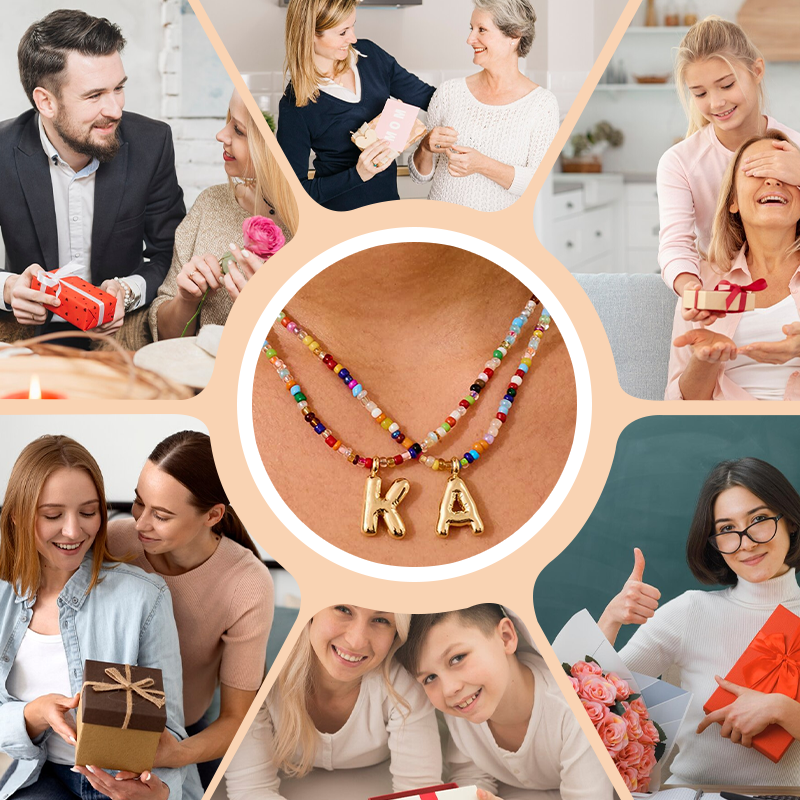 1 × Trendig halsband med 26 bokstavshängen och färgglada pärlor