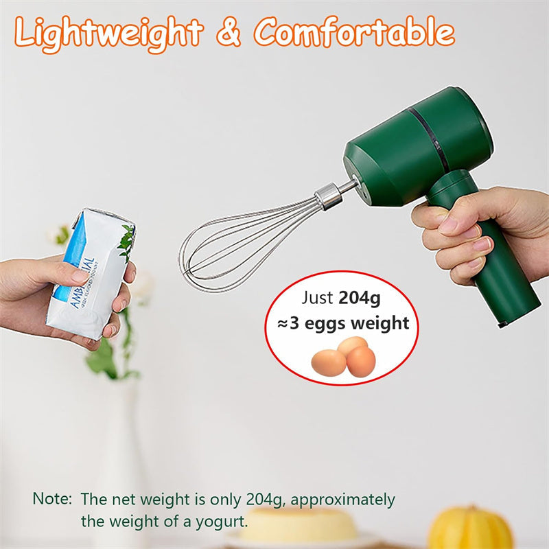 SLADDLÖS OCH BÄRBAR - Frigör dig från sladdarnas begränsningar och använd den var som helst utan att behöva koppla in den. Den kan laddas via USB, och när den är fulladdad kan den slå ägg 20 gånger i 5 minuter vardera.
