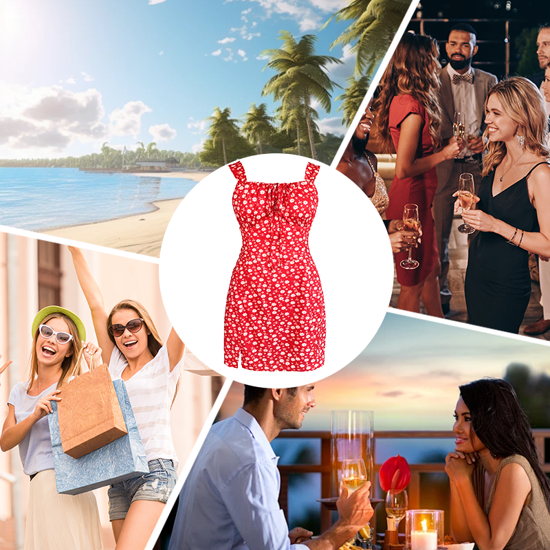 KonstnÀrlig blommig fusion - Levande botaniska mönster dansar genom hela klÀnningen, medan röda, rosa, gröna och blÄ blandas ihop i detta lÀttburna mÀsterverk. Den fyrkantiga halsen ger en modern touch och de breda spaghettistropparna ger en bekvÀm passform. Den lÀtta polyestervÀven gör att du kan flyta med i varje steg, oavsett om det Àr brunch, dejt eller trÀdgÄrdsfest!
