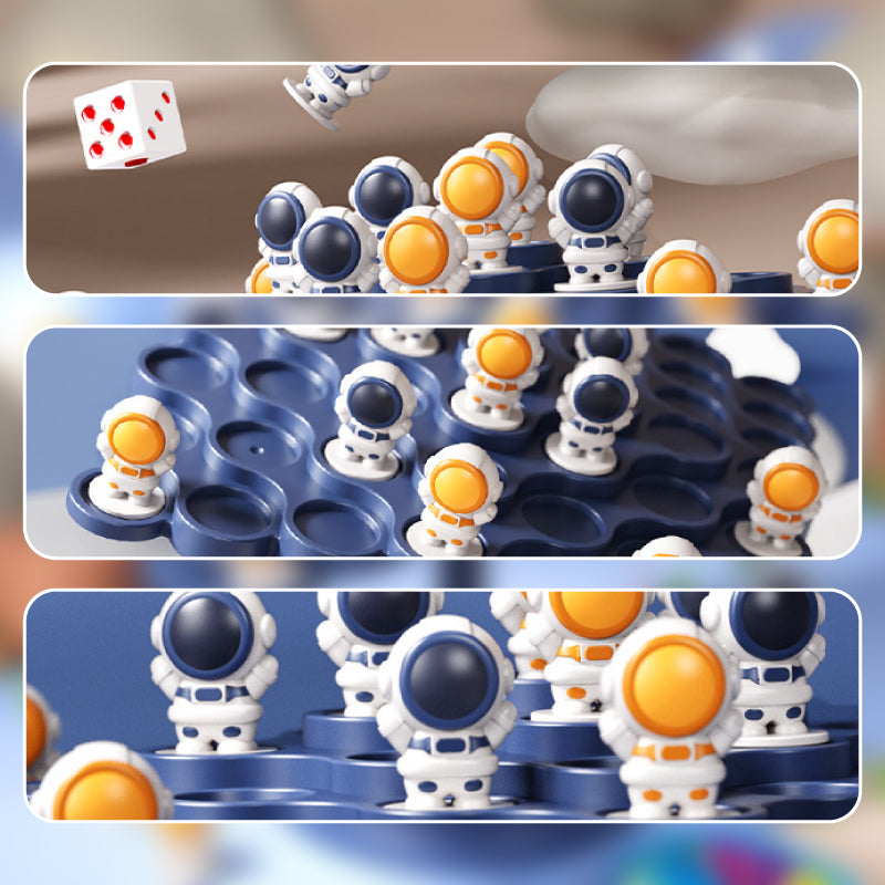 Spel 2: Spelaren placerar den lilla astronauten i en angiven position baserat på tärningskastet, vilket lägger till ett inslag av chans i spelet. Till sist avgör snurrandet på det stora äventyrshjulet vem som förlorar och får en bestraffning.