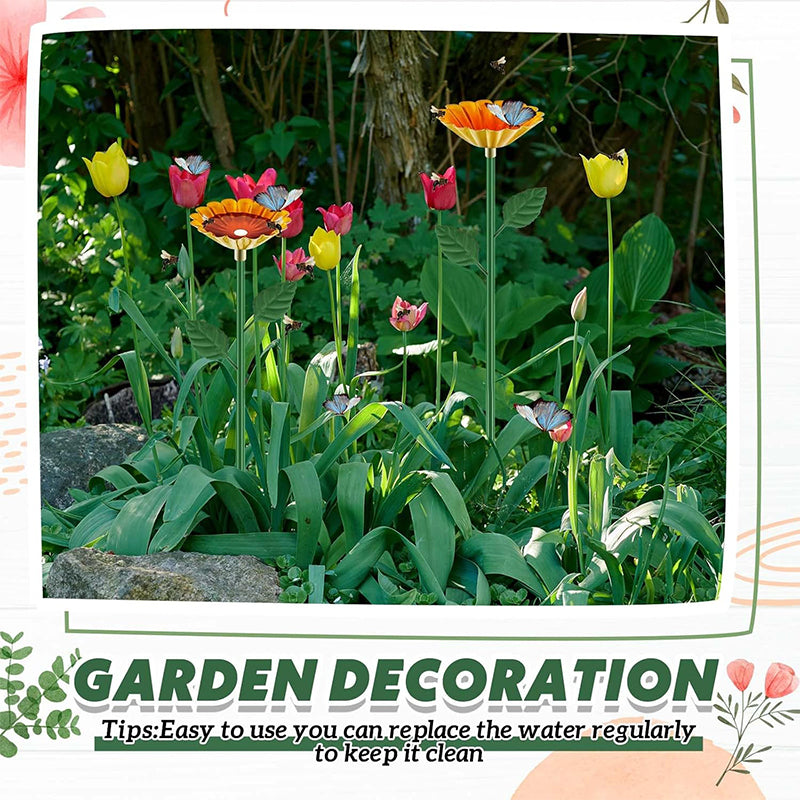 ENKEL INSTALLATION – Vattenstationen för bin kräver endast att blomman och stången sätts ihop, utan behov av installationsverktyg. När installationen är klar, sätt basen i trädgårdsjorden för att skapa en stabil och vacker vattenmatare för trädgården. Dessutom kan stångens höjd justeras för att skapa en färgglad trädgårdsdekoration i olika höjder.