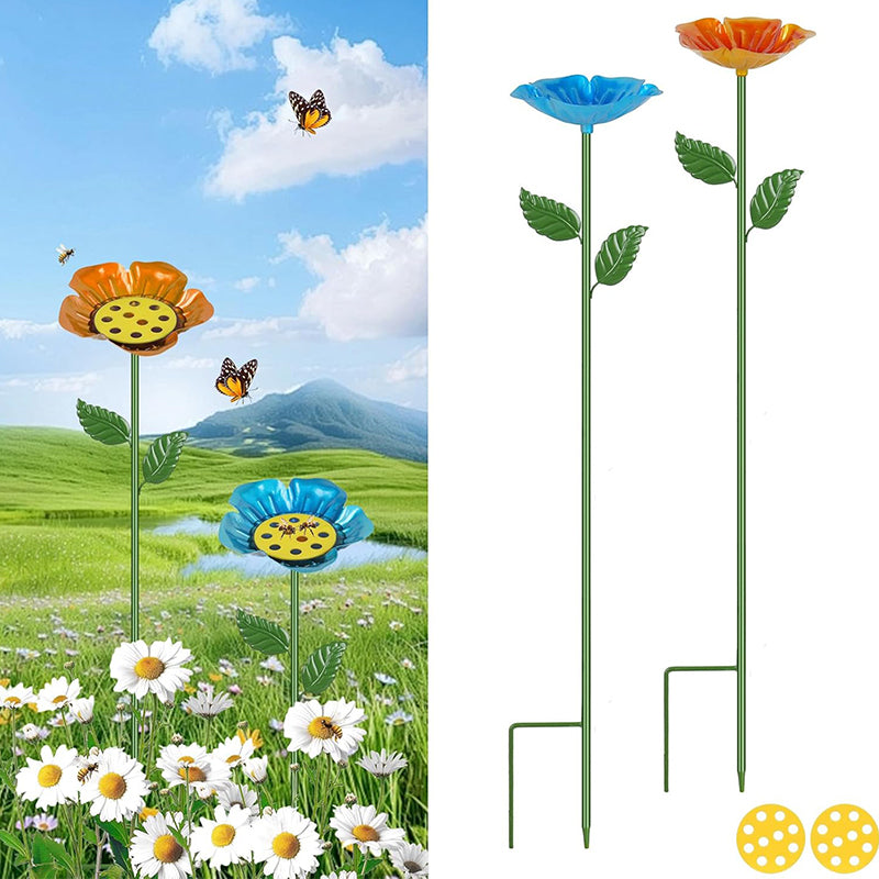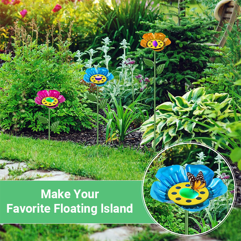 LIVLIGA OCH FÄRGGLADA – Vattenmatare för bin är designade som vackra blommor, med livliga färger och gröna stjälkar och blad för att locka fler bin och fjärilar att stanna och bidra till pollineringen.