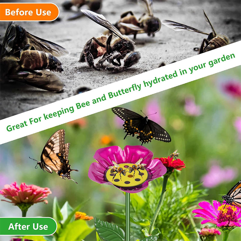 Förpackningen innehåller: 1 * Vattenmatare för bin och fjärilar med blomdesign