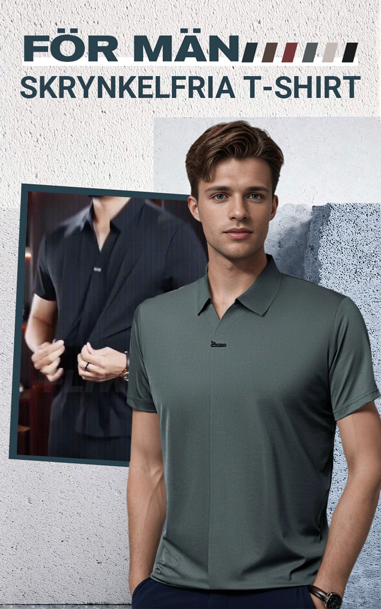 Casual T-shirt för män med revers som andas och är rynkfri