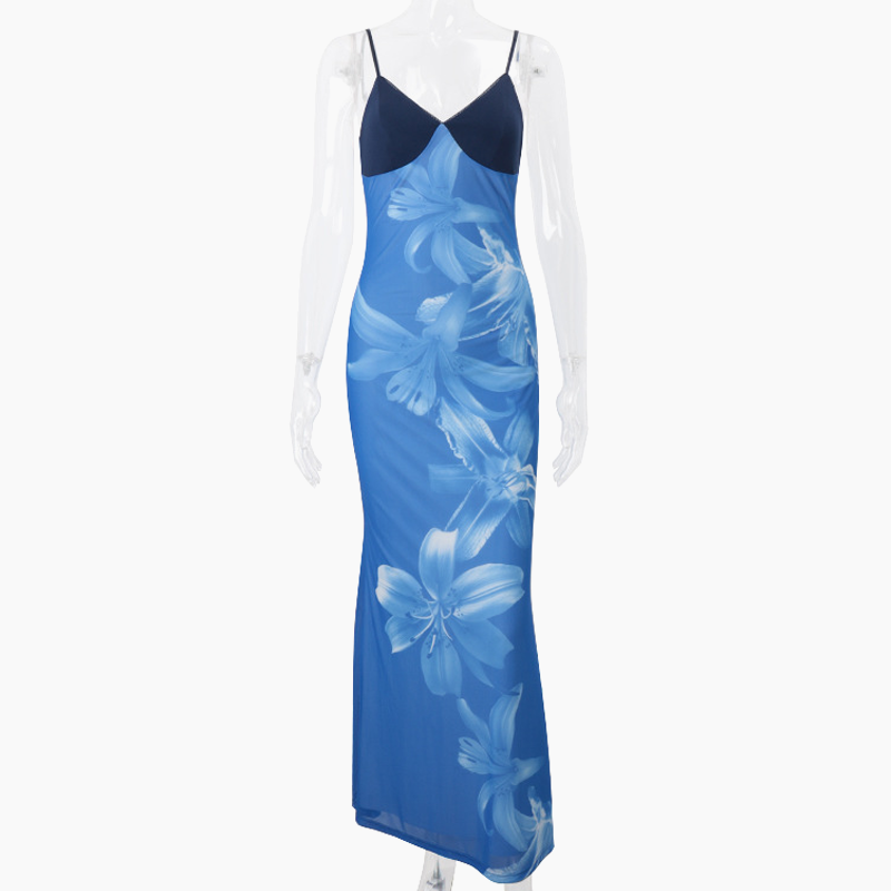Förpackningen innehåller: 1 * Blommig Bodycon Maxiklänning med Smala Axelband