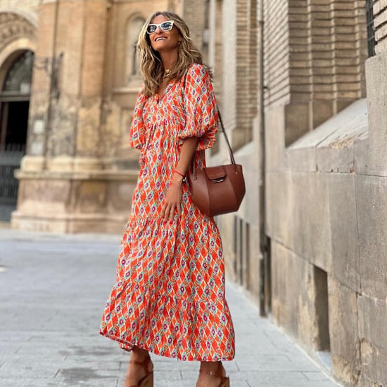 đ Elegant boho maxiklĂ€nning för kvinnor med puffĂ€rmarđ