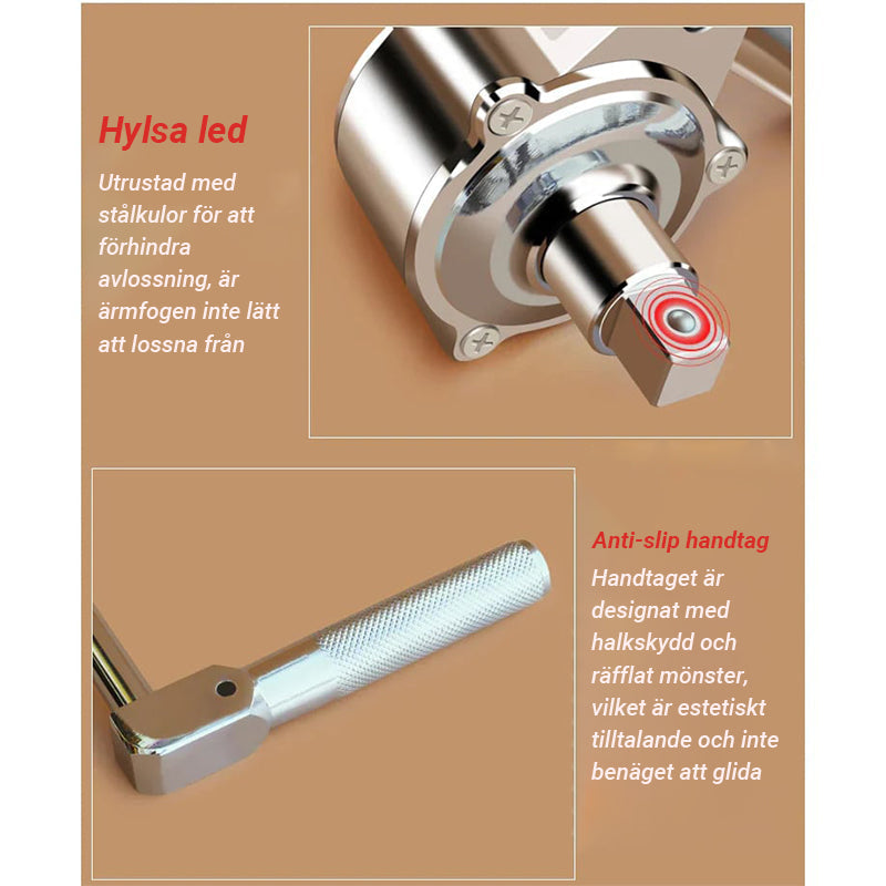 - Fördelar: Förtjockat stÄl, inte lÀtt att bryta, arbetsbesparande design, snabb demontering, högkvalitativa lager, flexibel rotation, högt vridmoment, inte lÀtt att glida, utsökt och kompakt, lÀtt att bÀra, med avtagningsskyddade stÄlkulor, hylsa inte lÀtt att falla av, handtag med halkskyddad rÀfflad design, vacker och inte lÀtt att glida