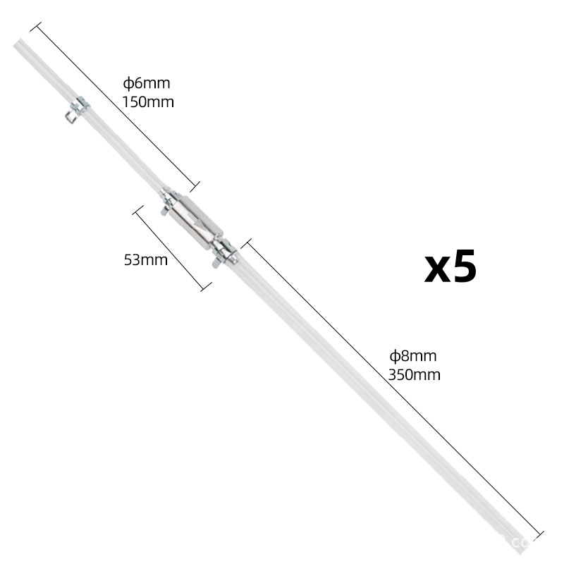 Utloppsslang: innerdiameter 5 mm, ytterdiameter 8 mm; längd 350 mm