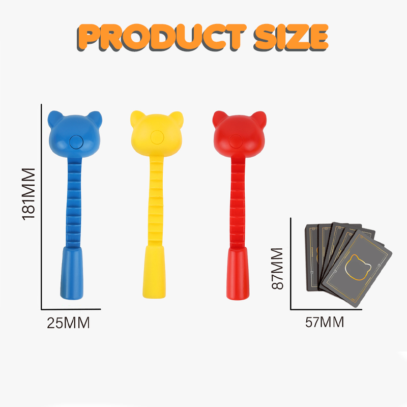 UNIKA SUGHAMMARE: Varje spelare använder en hammare med sugkopp i form av en kattfot. Denna roliga mekanik kräver snabbhet och precision för att snappa åt sig rätt kort, vilket tillför ett spännande och tillfredsställande fysiskt element till spelet.