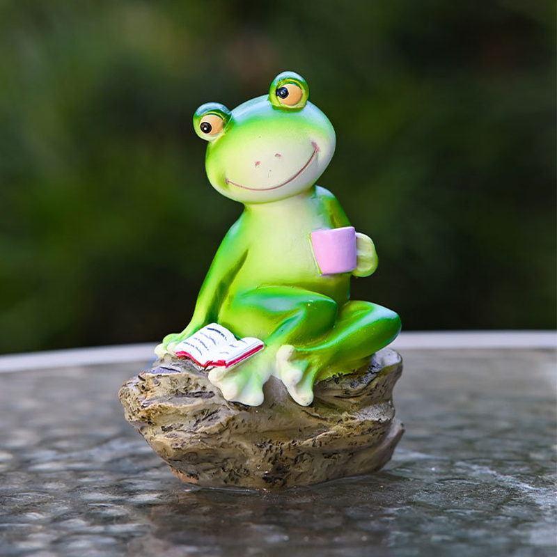 Charmig Läsande Grodstaty för Trädgårdsdekoration