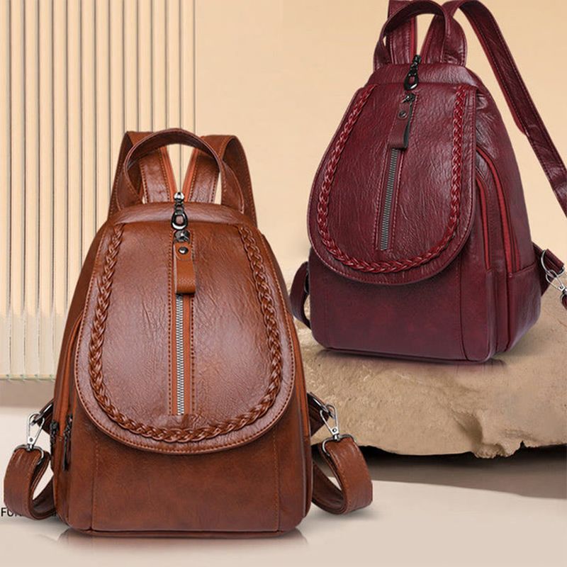 Damväska i läder med flätat hölje Ryggsäck i läder Konvertibel Crossbody Väska