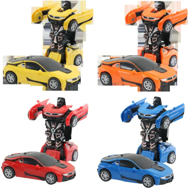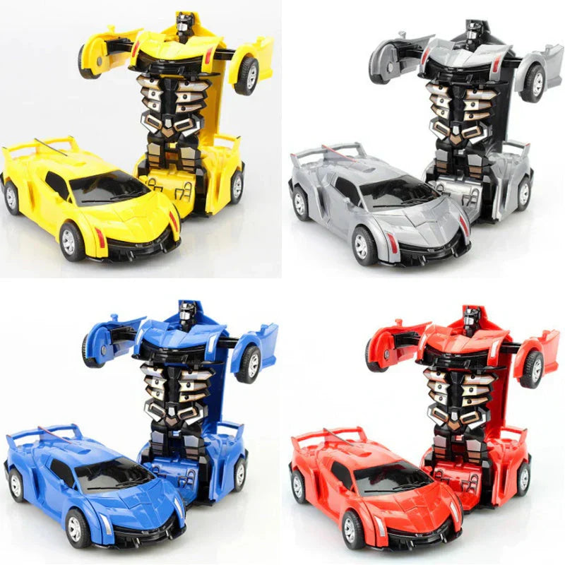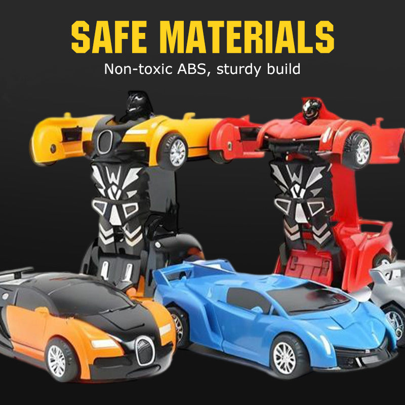 AUTOMATISK FĂRĂNDRING: Denna leksaksbil Ă€r designad för spĂ€nning och förvandlas automatiskt till en stĂ„ende robotfigur nĂ€r den utsĂ€tts för stötar, vilket ger actionfylld lek som hĂ„ller barnen engagerade samtidigt som den vĂ€cker deras nyfikenhet om orsak och verkan pĂ„ ett roligt sĂ€tt.