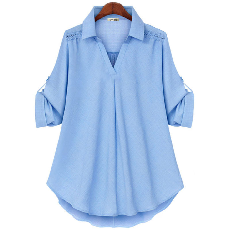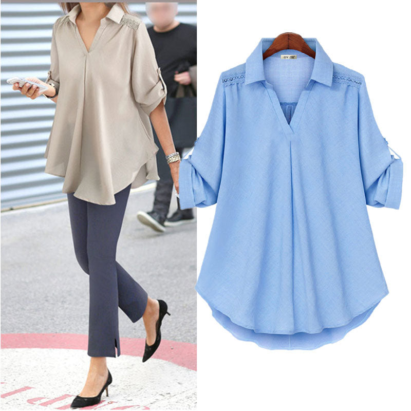 Paketet innehåller 1x Street Fashion V-ringad Casual Loose Comfy-skjorta för kvinnor