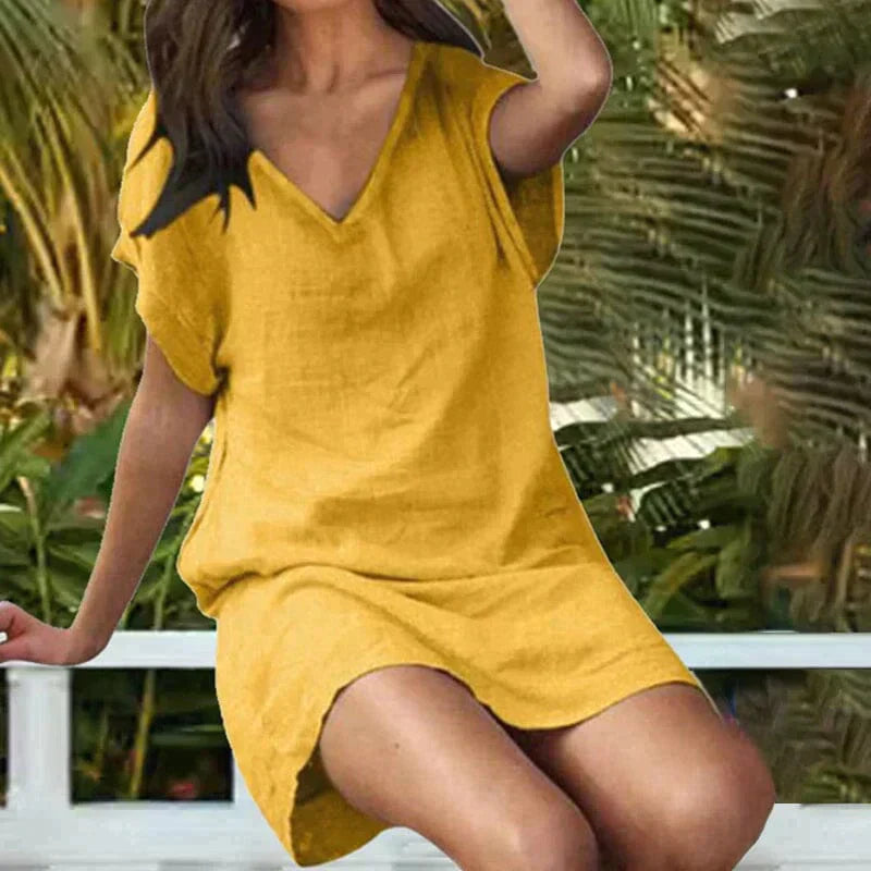 Paketet innehåller: 1 * Kort bomullshylsa och solid linneklänning