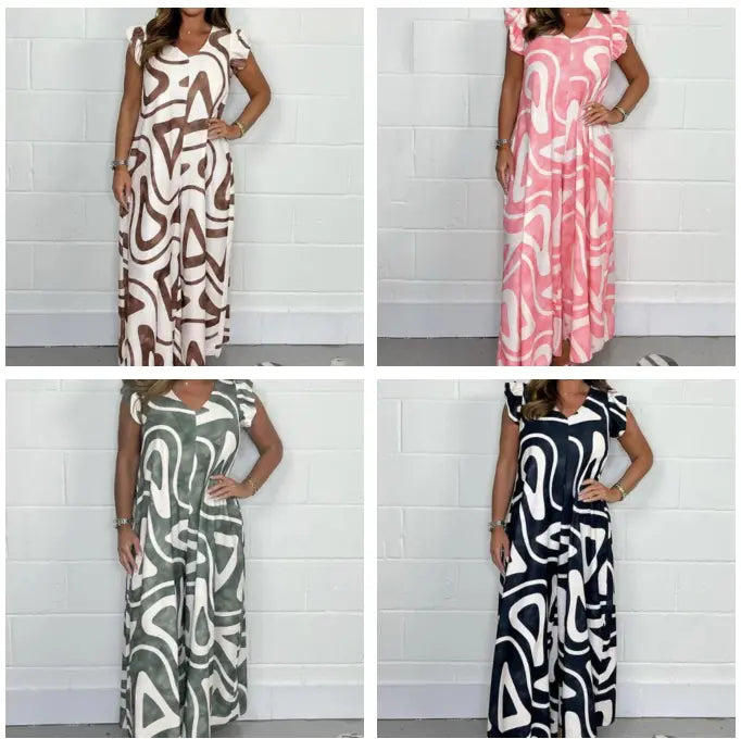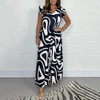 Paketet innehåller: 1 * Kvinnors sommar rufsade vida ben jumpsuit med geometriska tryck