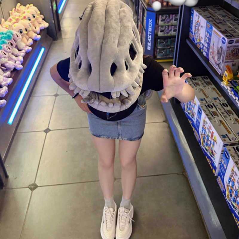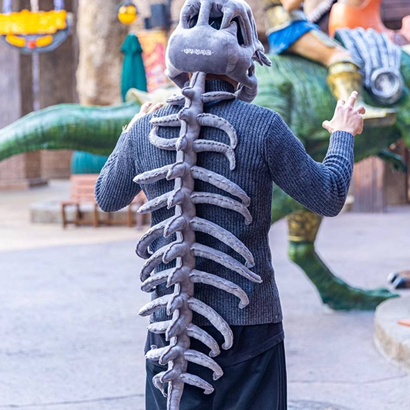 ROLIG DESIGN MED DINOSAURIESKELETT: Inspirerad av förhistoriska skelett med en lekfull twist, ger denna plyschdräkt omedelbar humor och fantasi för både barn och vuxna. Bärarna förvandlas till en fånig dinosauriefigur, vilket väcker glädje och skratt på fester eller under lek hemma.