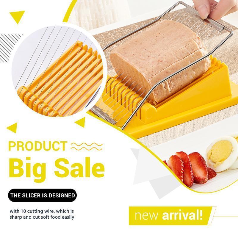 Designad med 10 skärande rostfria ståltrådar som enkelt skär 11 skivor åt gången, alla lika stora, för en fin presentation och jämn tillagning. Lätt att använda, placera bara matvaran på plats och tryck ned stången tills den är helt skivad.
