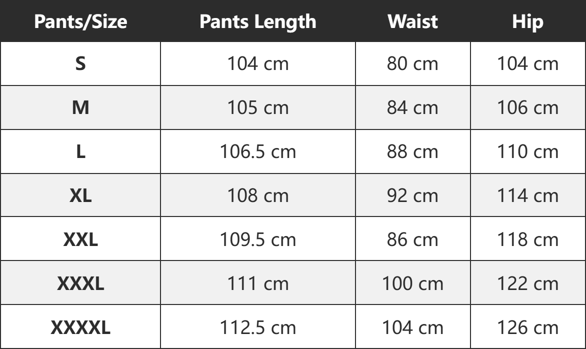 Storlekstabell för taktiska byxor