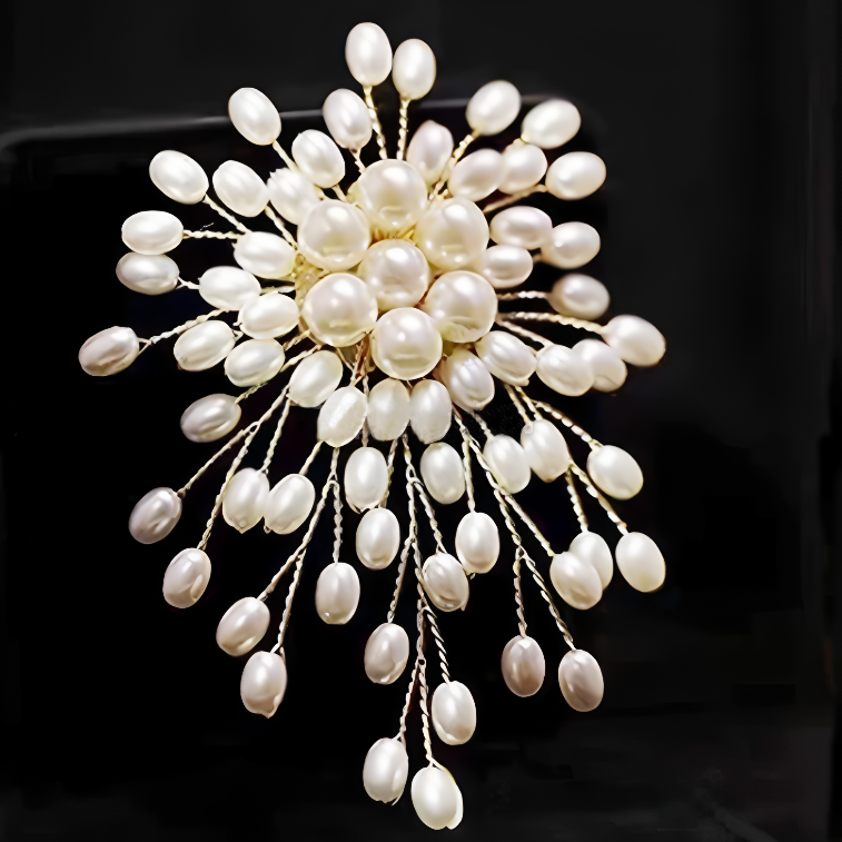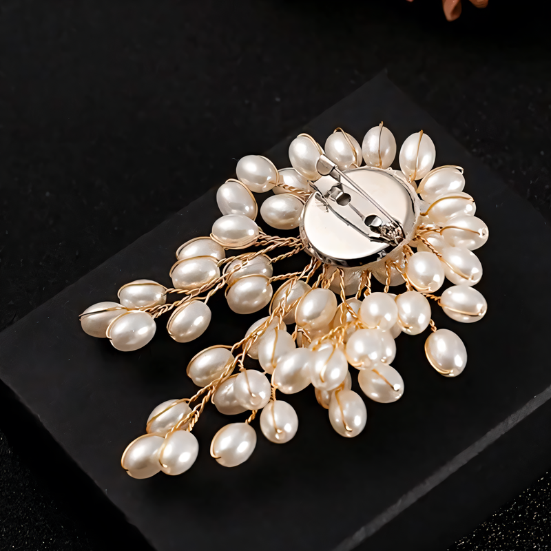 ELEGANTA PÄRLDETALJER: Denna brosch är utsmyckad med högkvalitativa pärlor och ger en touch av sofistikerad och tidlös elegans, vilket gör den till en idealisk accessoar för formella och avslappnade outfits.