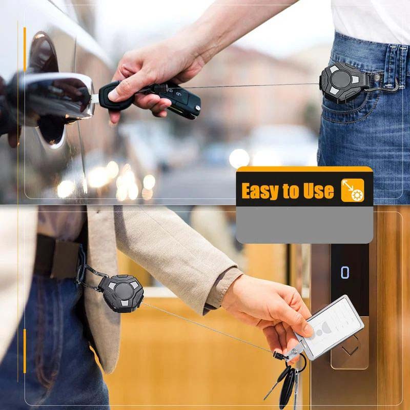 BEKVĂM ATT ANVĂNDA: Med en lĂ€ngd pĂ„ 80 cm klarar den utdragbara vajern de flesta avstĂ„nd nĂ€r den Ă€r fĂ€st vid ett bĂ€lteshĂ€nge eller en vĂ€ska. Det Ă€r bekvĂ€mt att öppna dörrar utan att ta ut ditt kort eller nycklar. Den belagda metallvajern minskar friktionen och sĂ€kerstĂ€ller att den glider in och ut smidigt varje gĂ„ng.