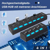 ✔️ Den erbjuder 4/7 USB-portar med en oberoende på/av-knapp för säkrare och energibesparande användning.