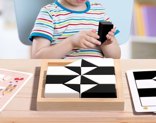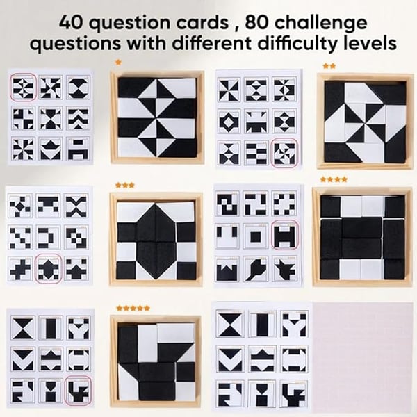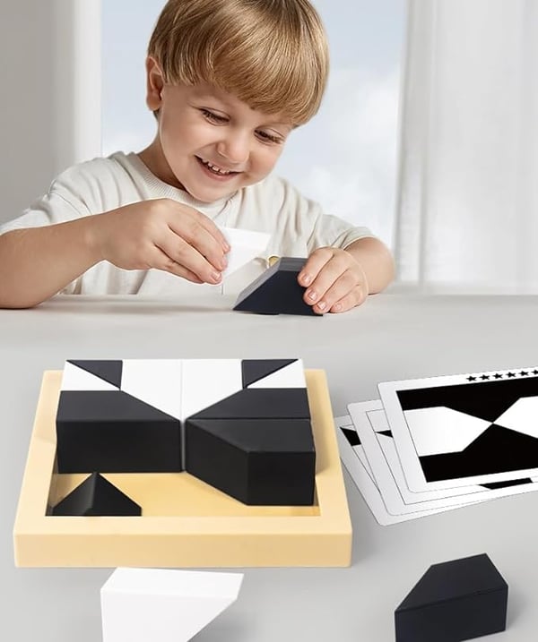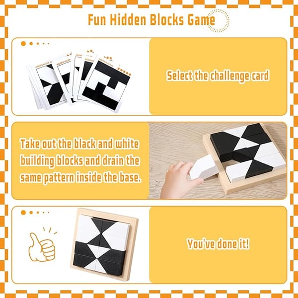 âš Utvecklande LekïŒIntroducera dina barn till hjĂ€rntrĂ€nande pussel med vĂ„ra pedagogiska byggklossar. Med flashkort och byggklossar i svart och vitt, fĂ„r barnen utmana sig sjĂ€lva genom att Ă„terskapa mönster och gömma klossarna pĂ„ rĂ€tt sĂ€tt. En unik och stimulerande upplevelse för hjĂ€rnan.