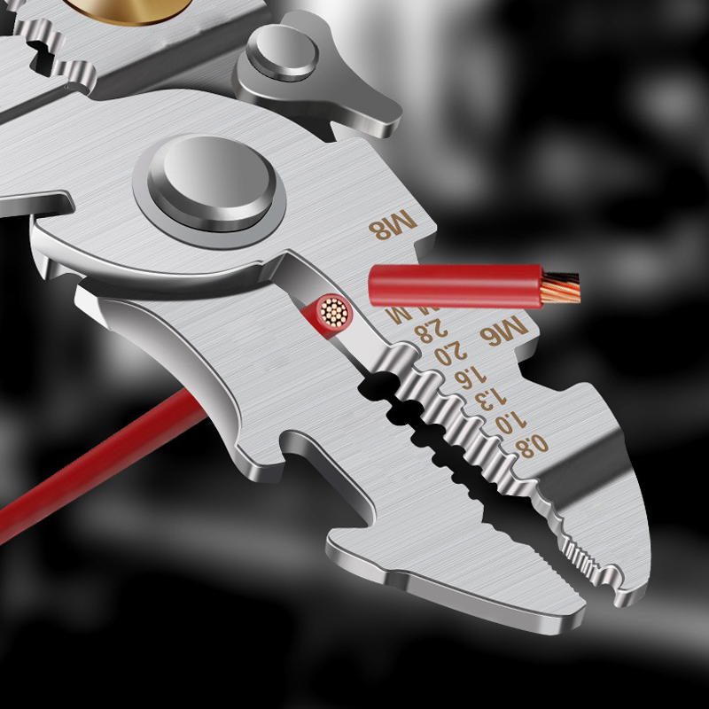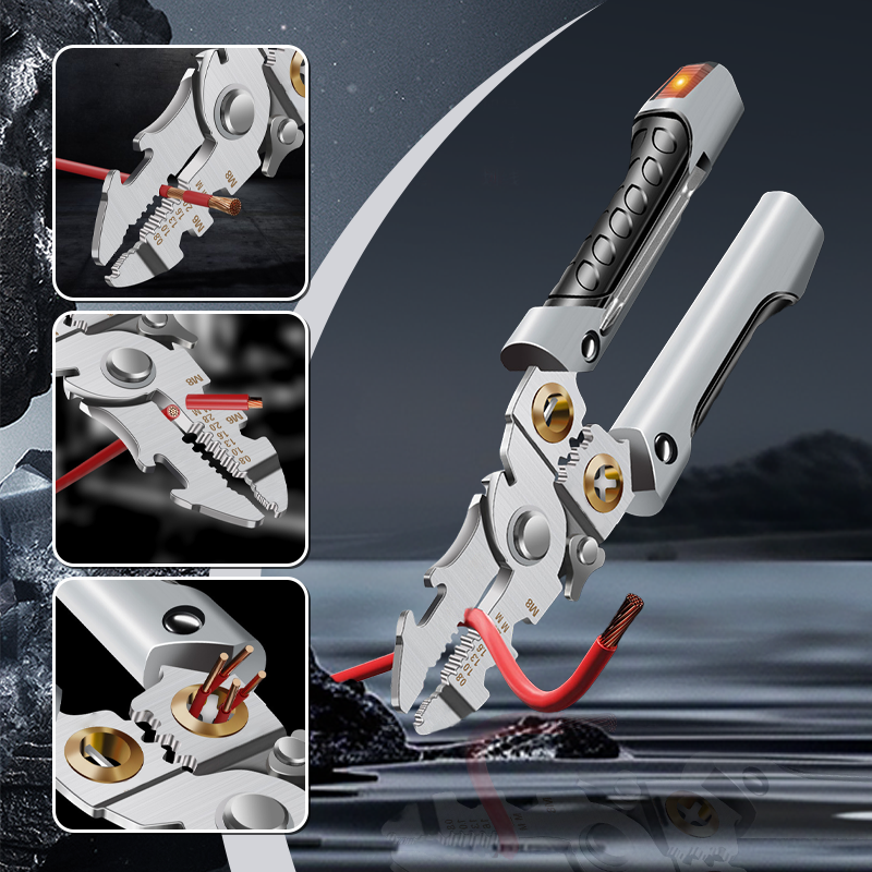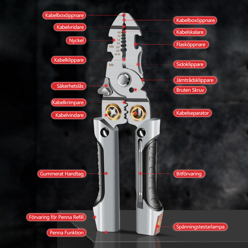 MÅNGSIDIG 21-I-1 FUNKTIONALITET – Inkluderar avisolering, vridning, klippning, pressning, klämning och mer. Perfekt för elektriker, gör-det-självare eller alla som arbetar med elektriska ledningar, och ger ett komplett verktyg för alla elektriska uppgifter.