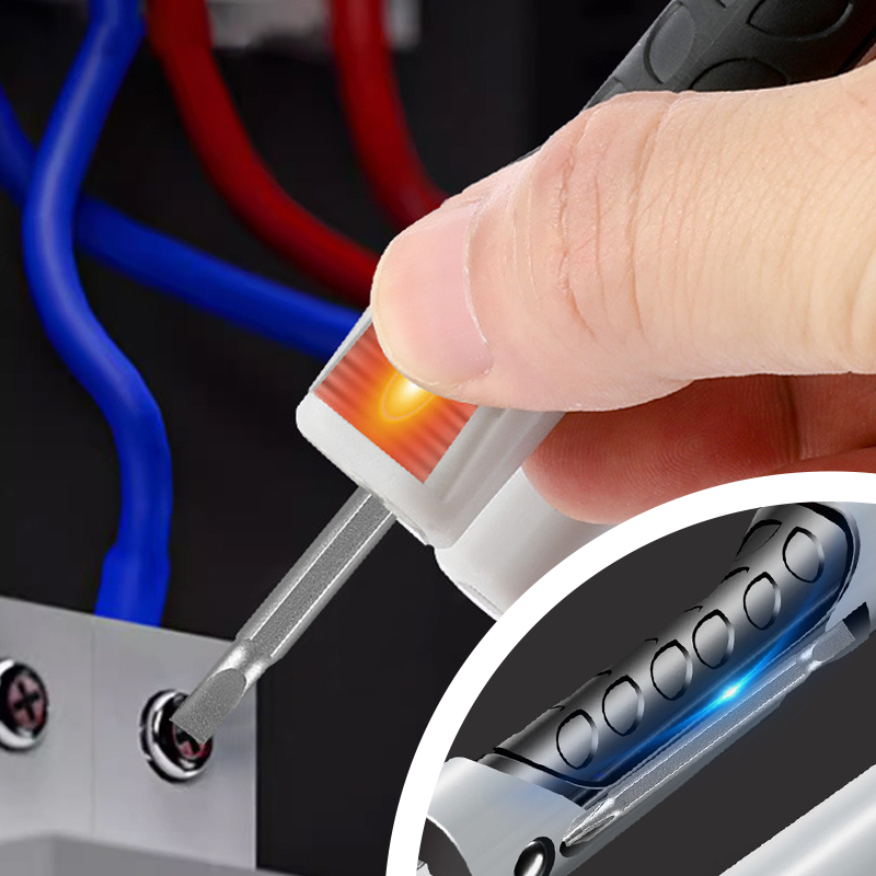 SNABBT SPÄNNINGSTEST – Omvandla enkelt verktyget till en spänningstestare för att upptäcka elektrisk ström i kablar, uttag eller kretsar. LED-indikatorer signalerar när spänning är närvarande, vilket säkerställer säkerheten.