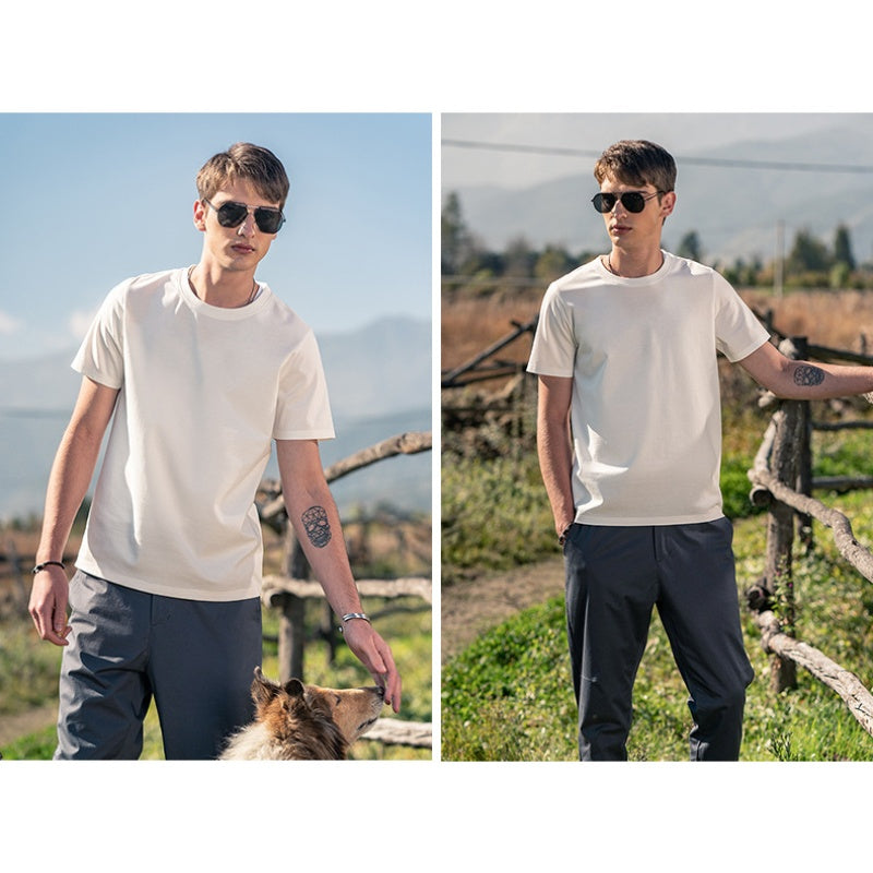 ANDNINGSBAR TEXTIL – Sval hela dagen: Denna kortärmade t-shirt är tillverkad i ett luftigt och hudvänligt material som håller dig sval även under varma dagar. Perfekt för både promenader och avslappning inomhus – tyget släpper igenom luft och motverkar överhettning och obehag.