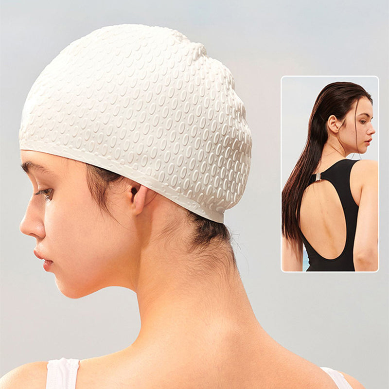 HÖGELASTISK SILIKON – Tillverkad av premium silikon, ger denna mössa en snug, bekväm passform som anpassar sig efter din huvudform, vilket säkerställer att den sträcker sig utan att förlora sin form för en förbättrad användarupplevelse.