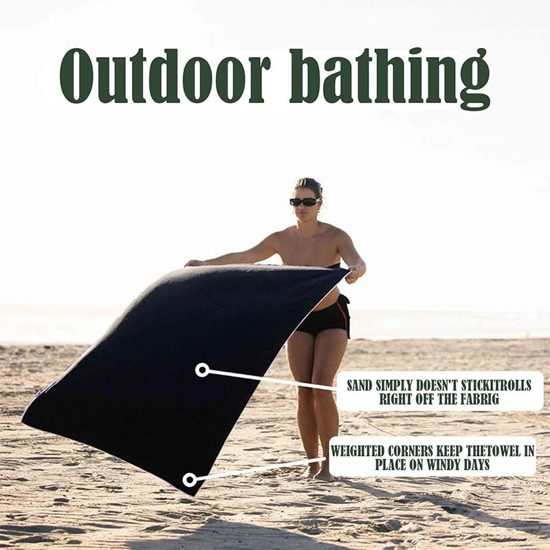 SNABBTORKANDE OCH SANDAVSTÖTANDE: Handdukens högkvalitativa tyg är designat för att torka snabbt, vilket förhindrar fuktighet efter användning. Dessutom säkerställer den sandavstötande funktionen att sand inte fastnar på handduken, vilket gör den lätt att skaka av och rengöra efter en dag på stranden.