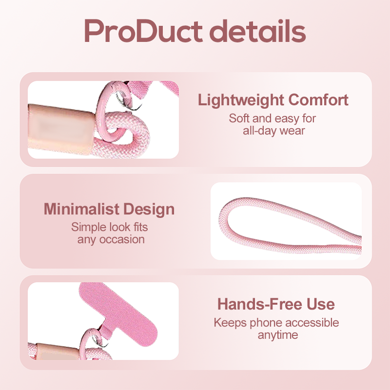 ENKEL MINIMALISTISK STIL – Den rena designen kompletterar ett brett utbud av telefonfodral och kläder, vilket gör den lämplig för daglig användning. Dess diskreta utseende undviker bulk, vilket säkerställer att linan förblir ett praktiskt men ändå elegant tillbehör. Oavsett om det är på jobbet, resan eller fritiden, smälter den sömlöst in i olika scenarier utan att dra till sig onödig uppmärksamhet.