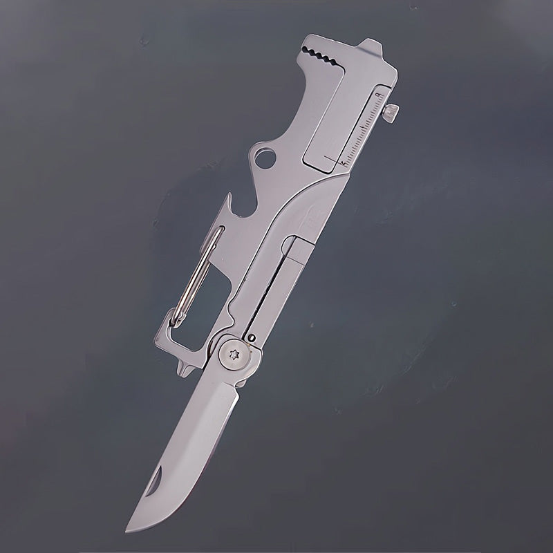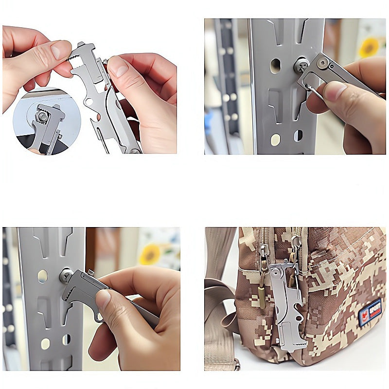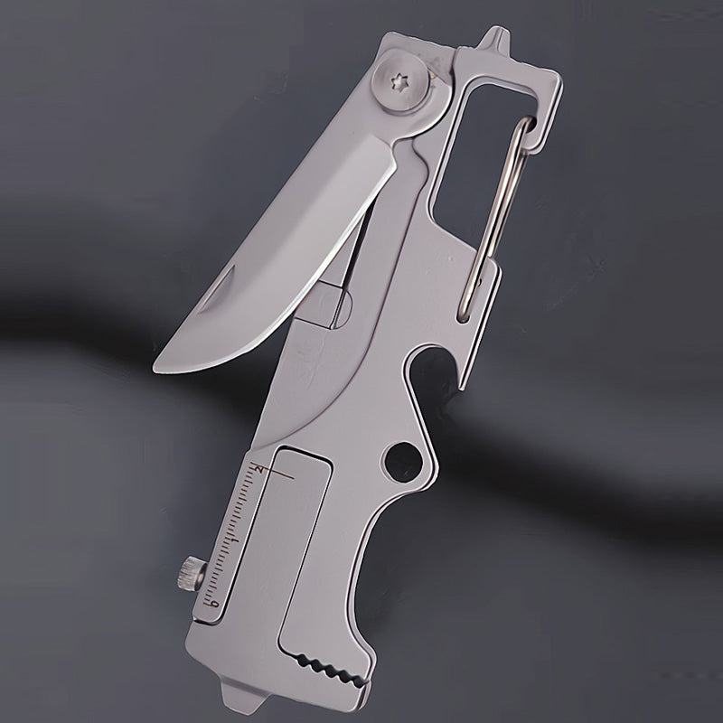 LÄTT OCH PORTABELT: Designat för enkel bärbarhet är detta multiverktyg både lätt och hopfällbart. Den kompakta designen passar bekvämt i fickan eller fästs vid en nyckelring eller snodd, vilket säkerställer bekvämlighet för användning på språng och snabb åtkomst.