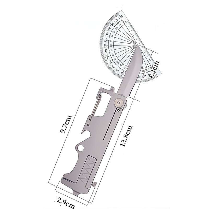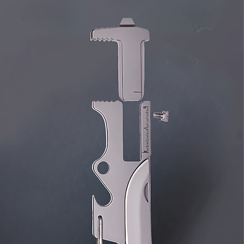 MÅNGSIDIGT MULTIVERKTYG: Detta multifunktionella verktyg kombinerar en kniv, en skiftnyckel, ett måttband, skruvmejslar och en flasköppnare. Designat för att hantera olika uppgifter, är det perfekt för gör-det-själv-projekt, camping och daglig användning, och erbjuder bekvämlighet och effektivitet i en kompakt enhet.