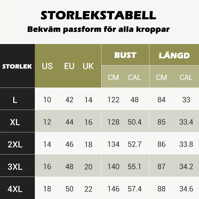 Storlek: L, XL, 2XL, 3XL, 4XL