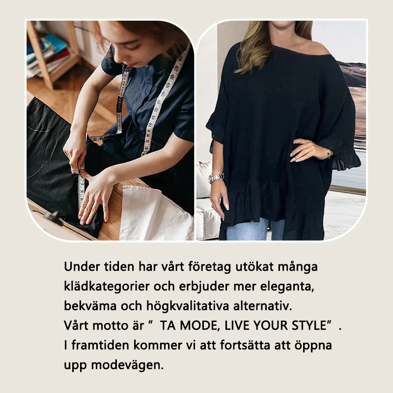 FLATTERING NECKLINE: Off-the-shoulder-designen framhäver vackert nyckelbenet och axlarna, vilket ger en touch av tilltalande.