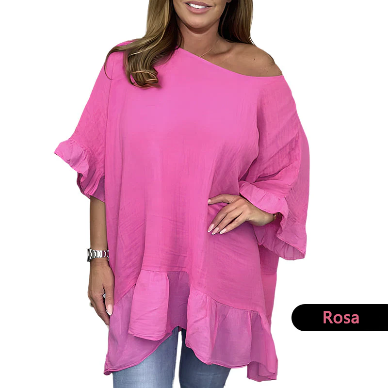 FLYTANDE SÖK: Delikata volanger ger en sofistikerad och feminin touch och lyfter din stil utan ansträngning. De förstärker toppens luftiga silhuett och ger ett graciöst och flytande utseende.