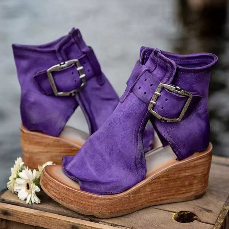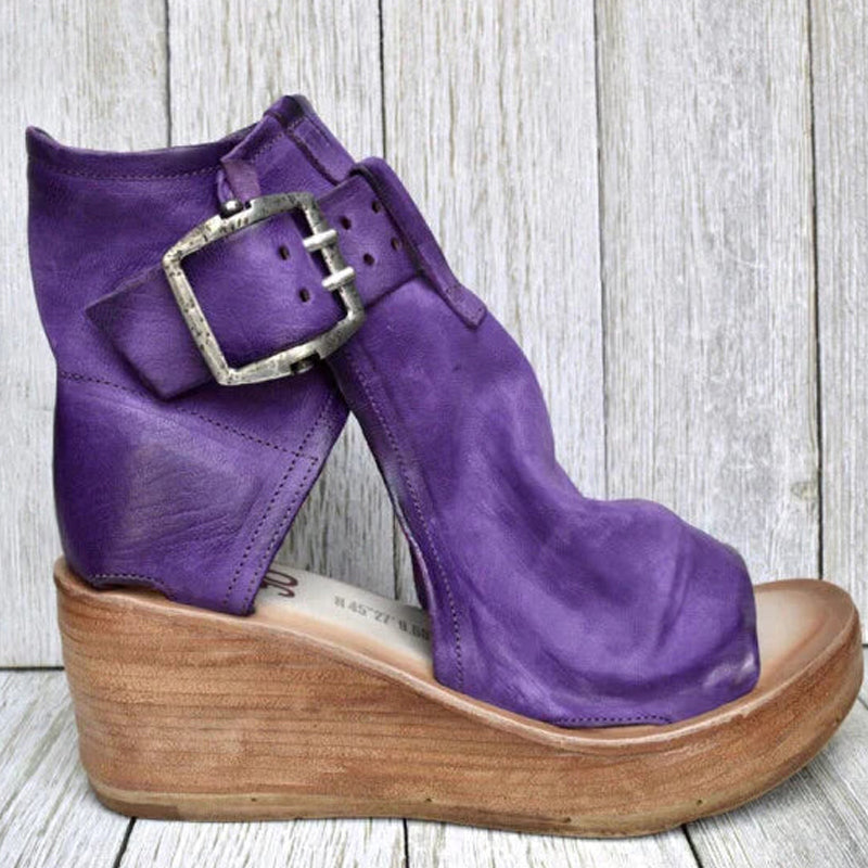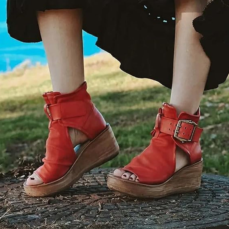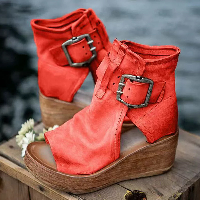 Paketet innehåller: 1 × Ankelstövlar med spänne, öppen tå och kilklack