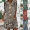 Dammode Tryckta V-Ringade Klänningar med Midjeärm