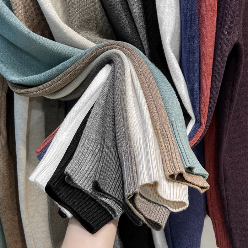 Men's solid color knitted crew neck base shirt