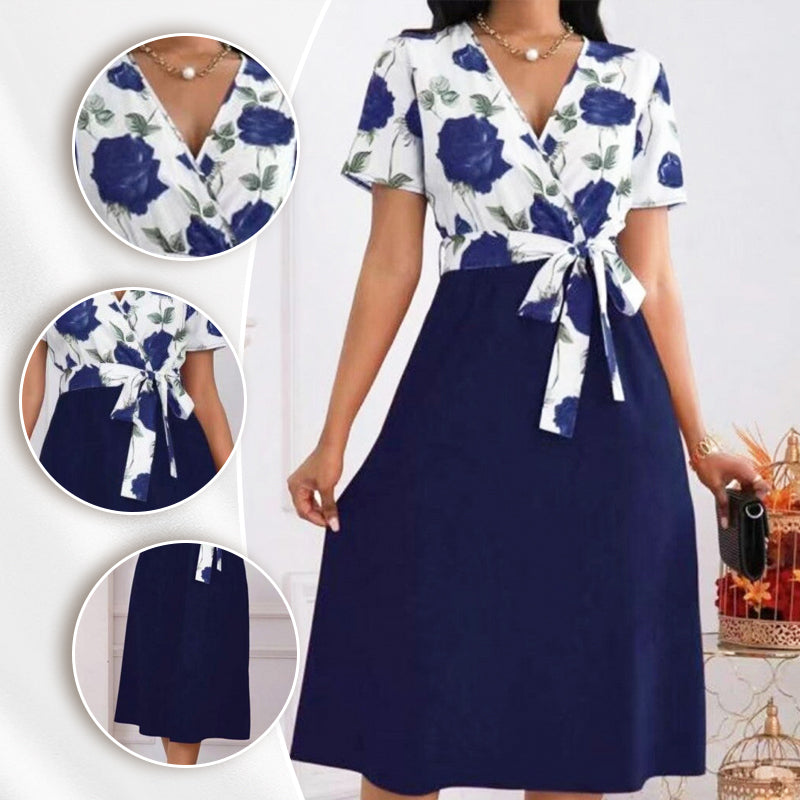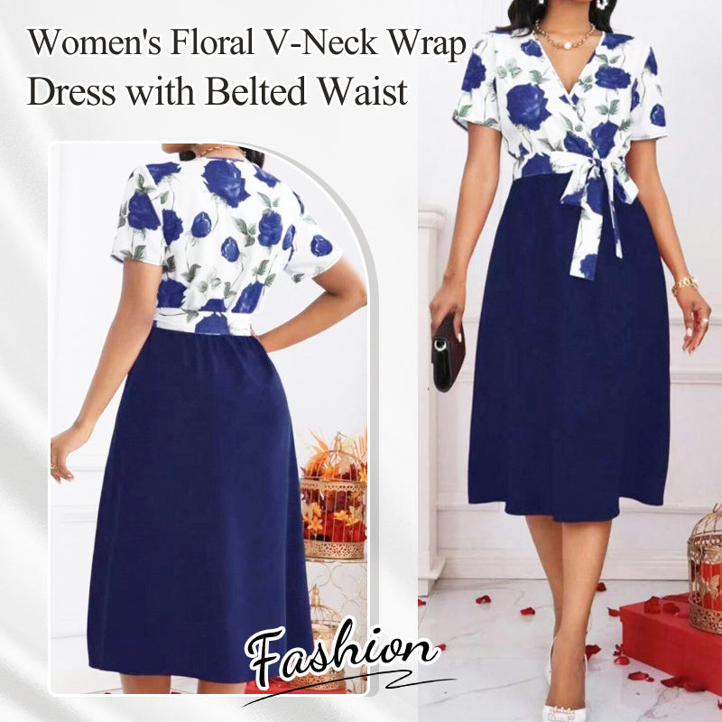 V-ringad omlottklänning med blommig V-ringning och bälte i midjan för kvinnor
