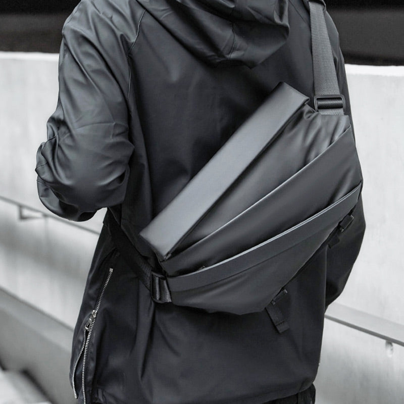 Väskan är designad med en parallell hexagonal look som garanterat kommer att väcka uppmärksamhet. Väskan kommer i en svart färgkombination med ett sofistikerat logotryck på framsidan. Den har också flera fickor och fack för förvaring av nycklar, plånbok och andra småsaker.