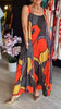 1 * Ärmlös lång klänning med tryck och fyrkantig halsringning för kvinnor