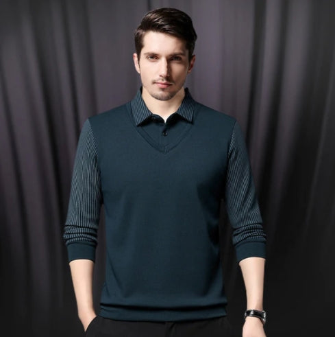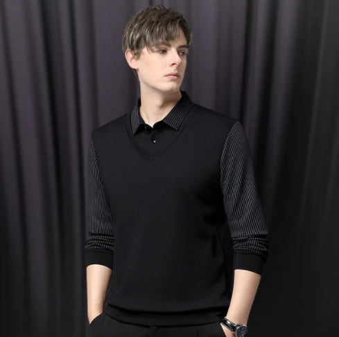 đ Lapel faux tvĂ„delad stickad skjorta herr