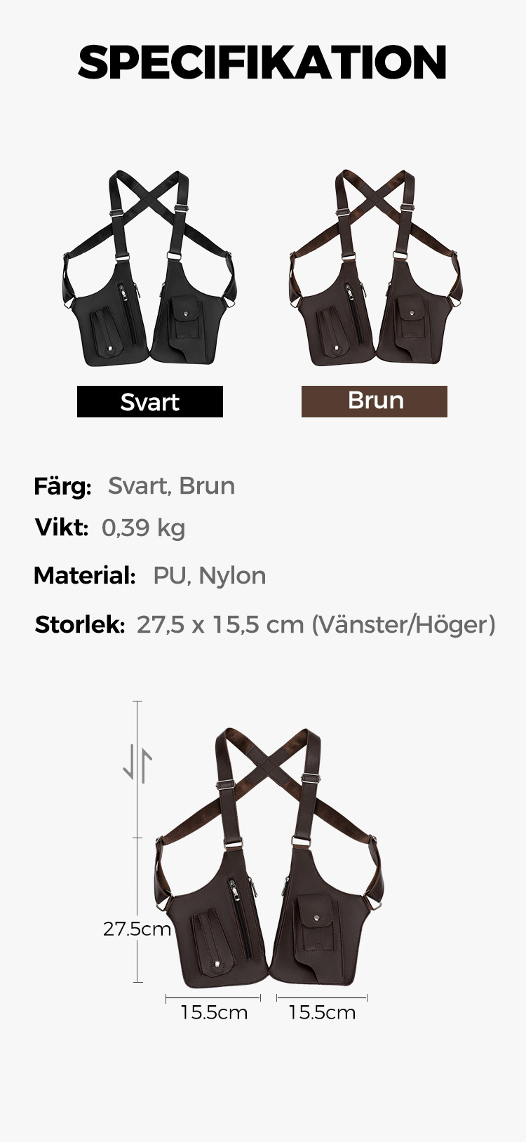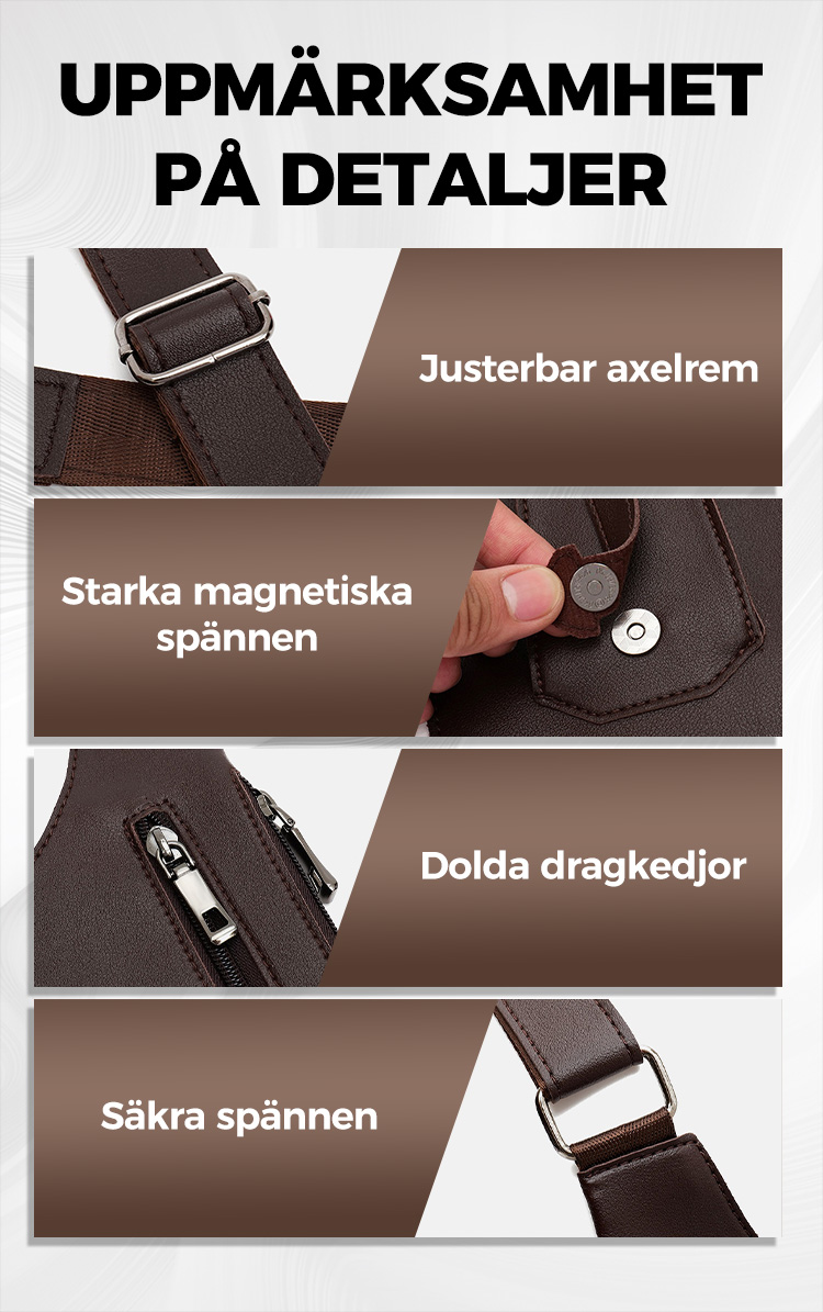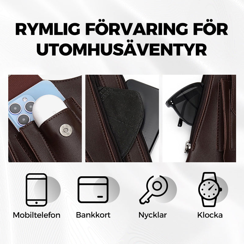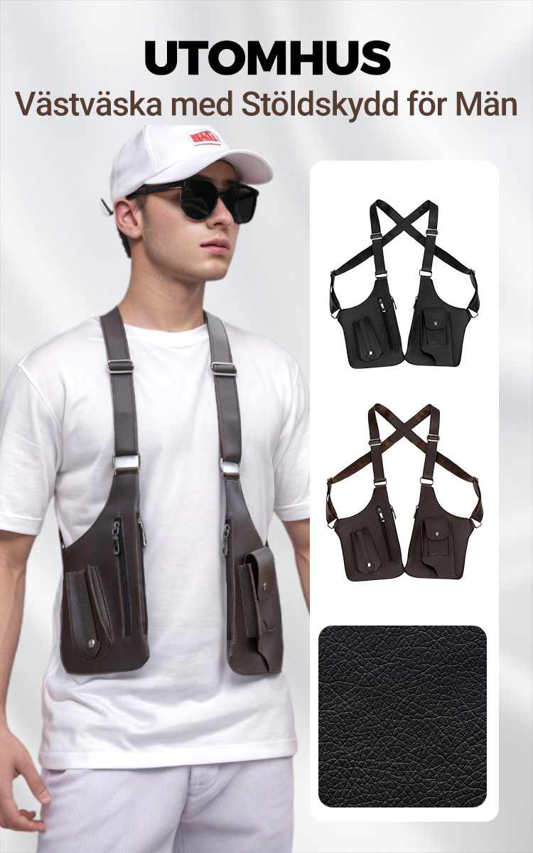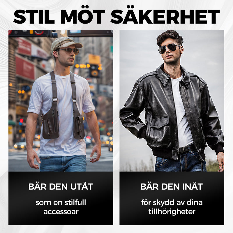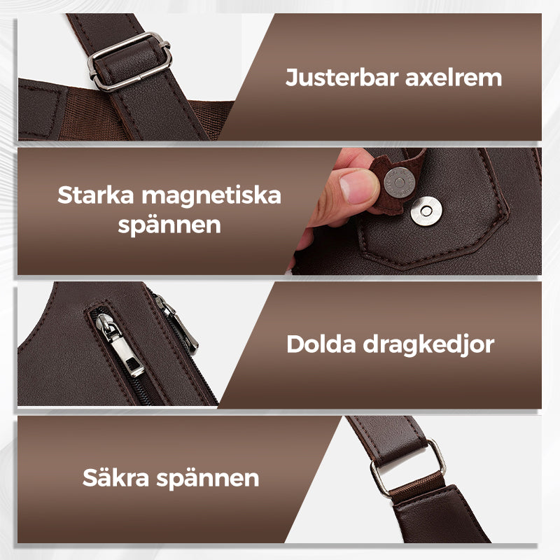 Stöldskyddad taktisk väska med dubbla axlar och flera fickor för män