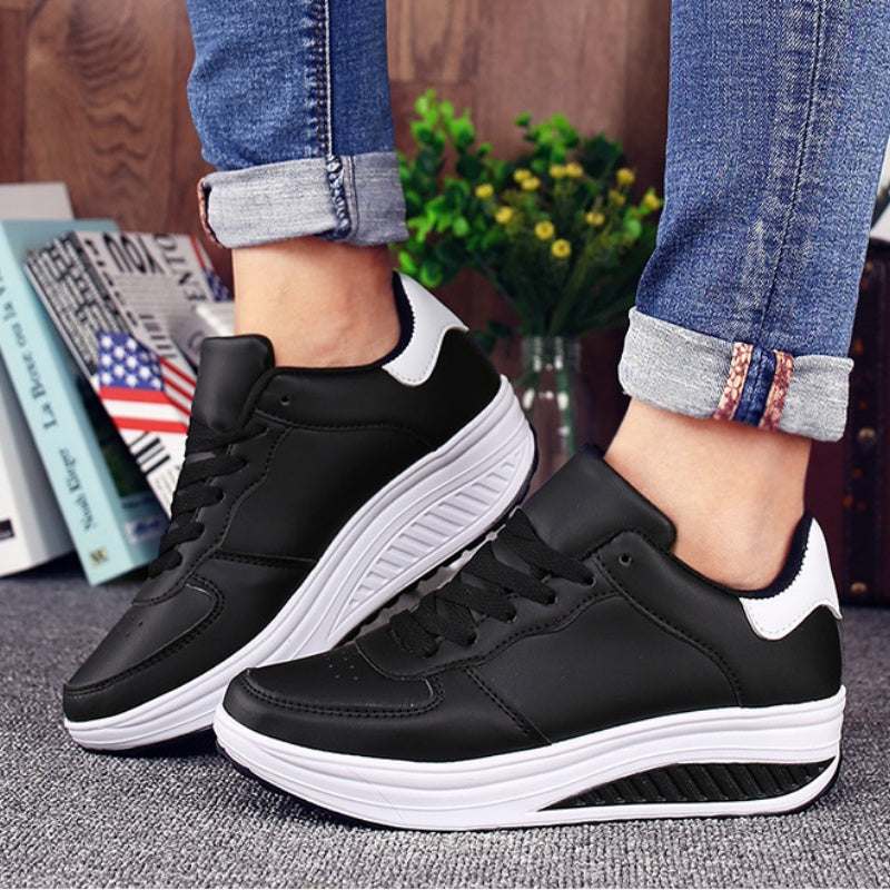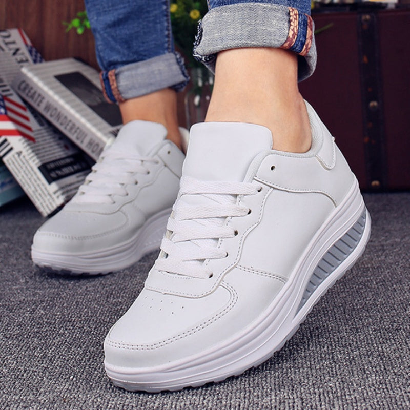 Bekväma, vadderade sneakers i mikrofiberläder med tjock sula för damer – en unik upplevelse