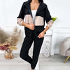 STRETCH JOGGER PANTS – De matchande joggingbyxorna har elastisk midja och muddar, vilket ger obegränsad rörelsefrihet och en smickrande passform. Oavsett om du kopplar av hemma eller går ut, ger det eleganta randiga mönstret en visuell längd och sportig elegans till din silhuett.