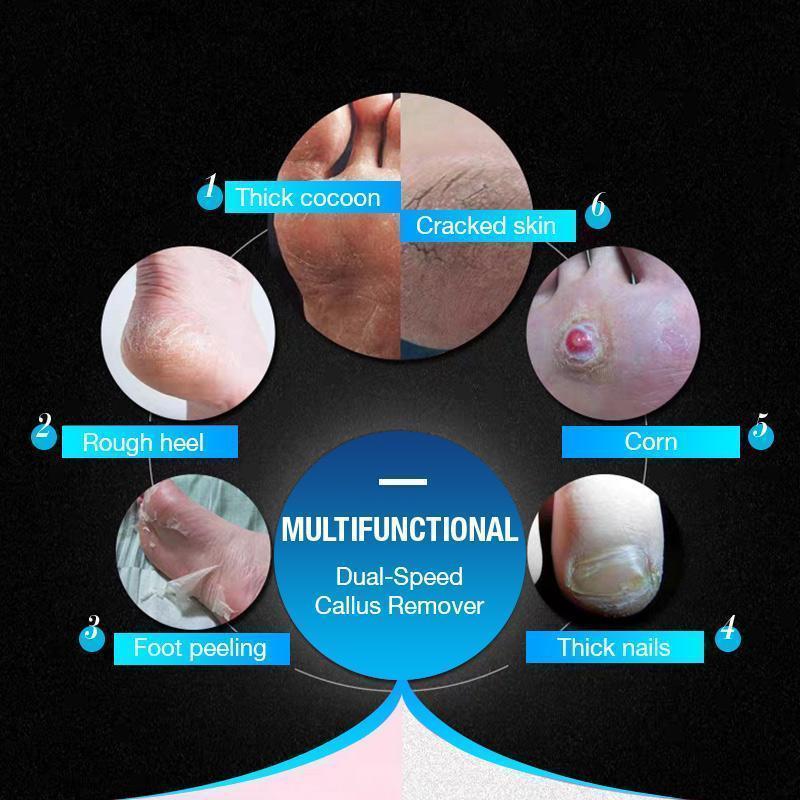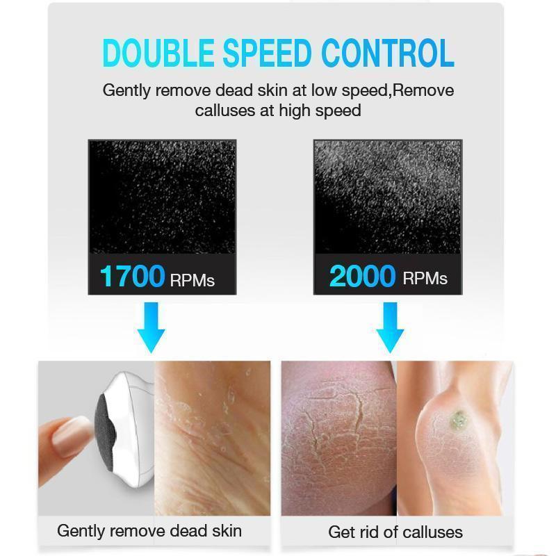 - Kraftfull fot callus -remover: Enkelt ta bort död hud och hårda kallus med 2000 varv per minut - nano -abrasion -huvuden roterar vid hög hastighet och skapar den perfekta döda hudborttagaren för fötter.