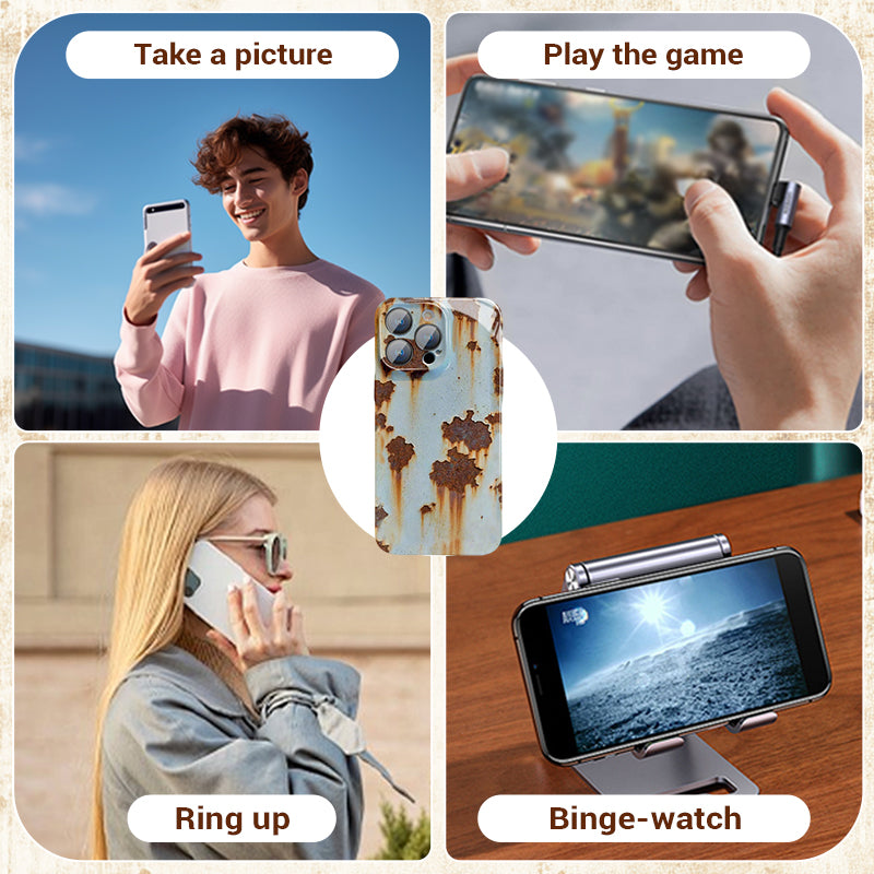 UNIK RUST-ESTEKTIK - Detta fodral har en autentisk rostfinish som efterliknar vÀderbiten metall, vilket ger din telefon en omedelbar industriell vintage-look. Den konstnÀrliga ytan ger ett visuellt djup samtidigt som den Àr mjuk att ta pÄ.